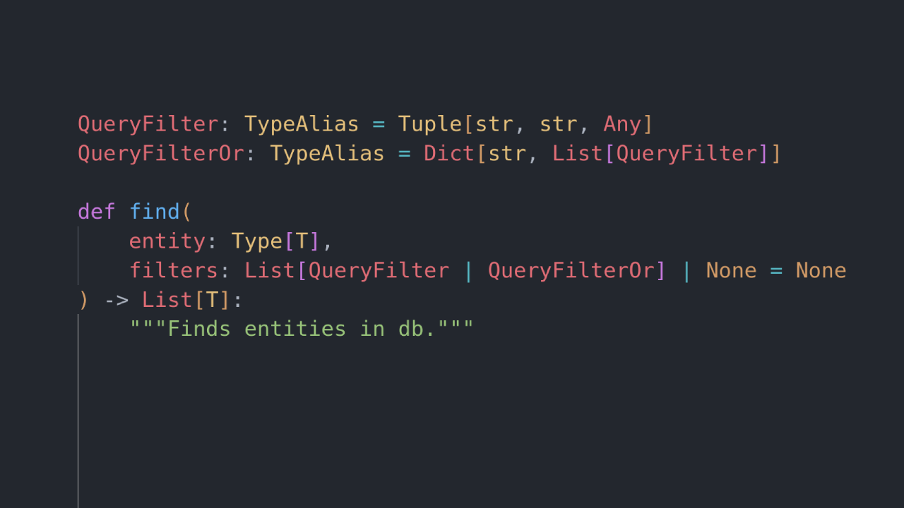 However as I ran the typechecker across the entirety of my code base, it actually uncovered an exotic and definitely undocumented filter format. A format that worked perfectly fine and something I had fully implemented, but did not match my naive type hint.